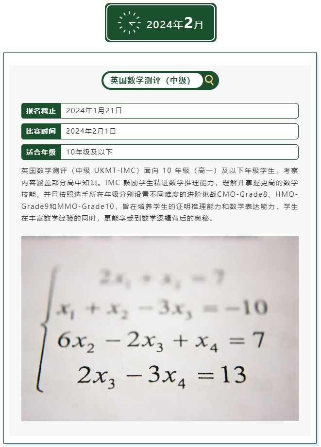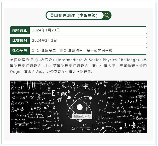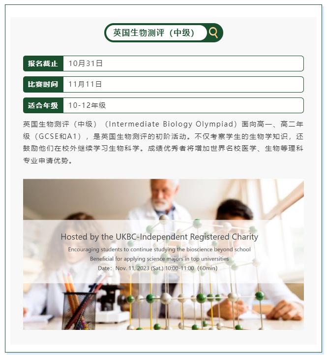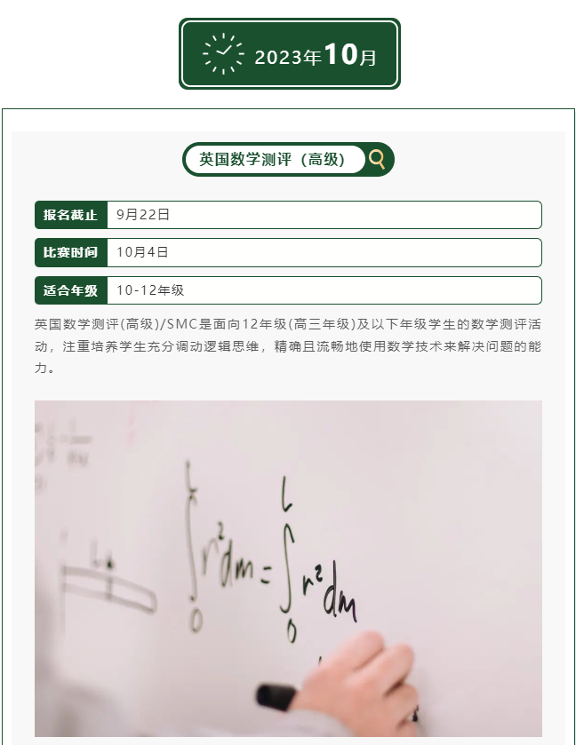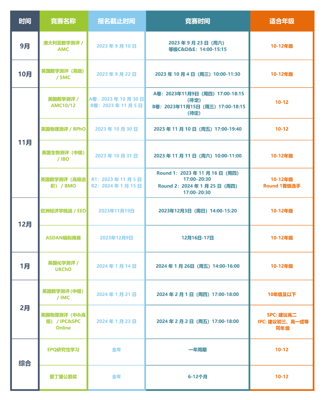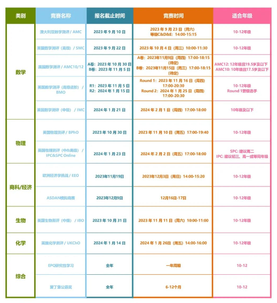 2023下半学年高质量国际竞赛盘点,收藏! 发布时间:2年前人气:4.71K 2023下半学年启程,竞赛早了解,升学早规划!一起来看看高质量国际竞赛吧~ 2023年秋季学期学生竞赛活动一览表(时间轴版) 2023秋季学期学生竞赛活动一览表(学科分类版)